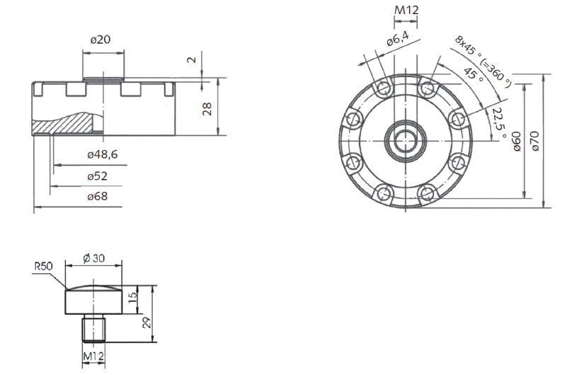 NS-TH3 系列轮辐式称重传感器结构;